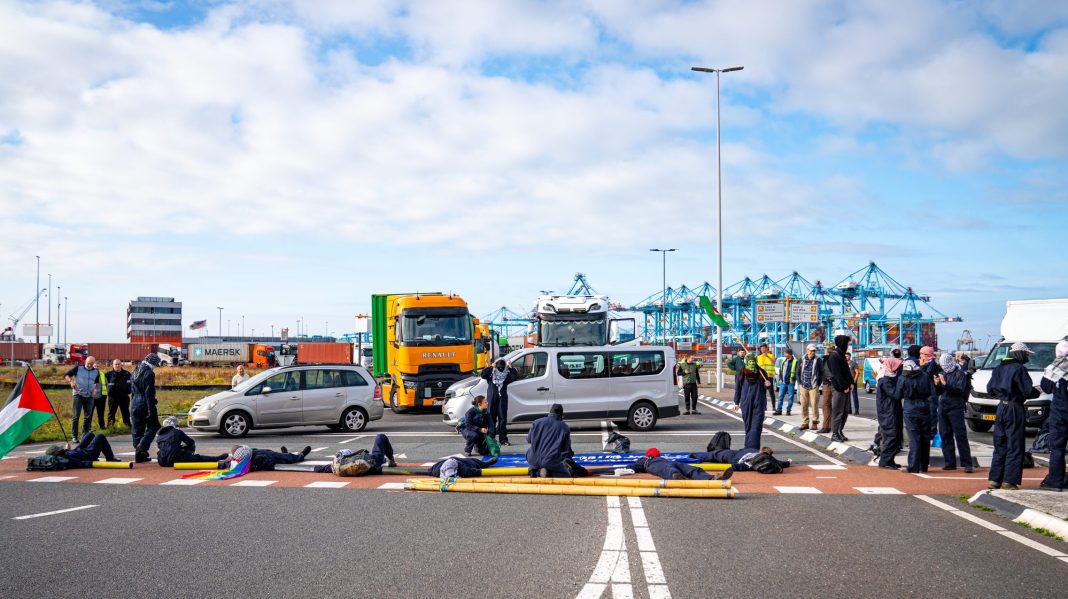 Tientallen activisten van Geef Tegengas blokkeren daarnaast vrijdag terminals in de haven van Rotterdam. Zij vinden dat de gemeente Rotterdam en de haven “medeplichtig zijn aan de genocide in Gaza”. De organisatie heeft voor zaterdag een “massablokkade” aangekondigd, waarmee zij alle transport van en naar de haven willen platleggen.