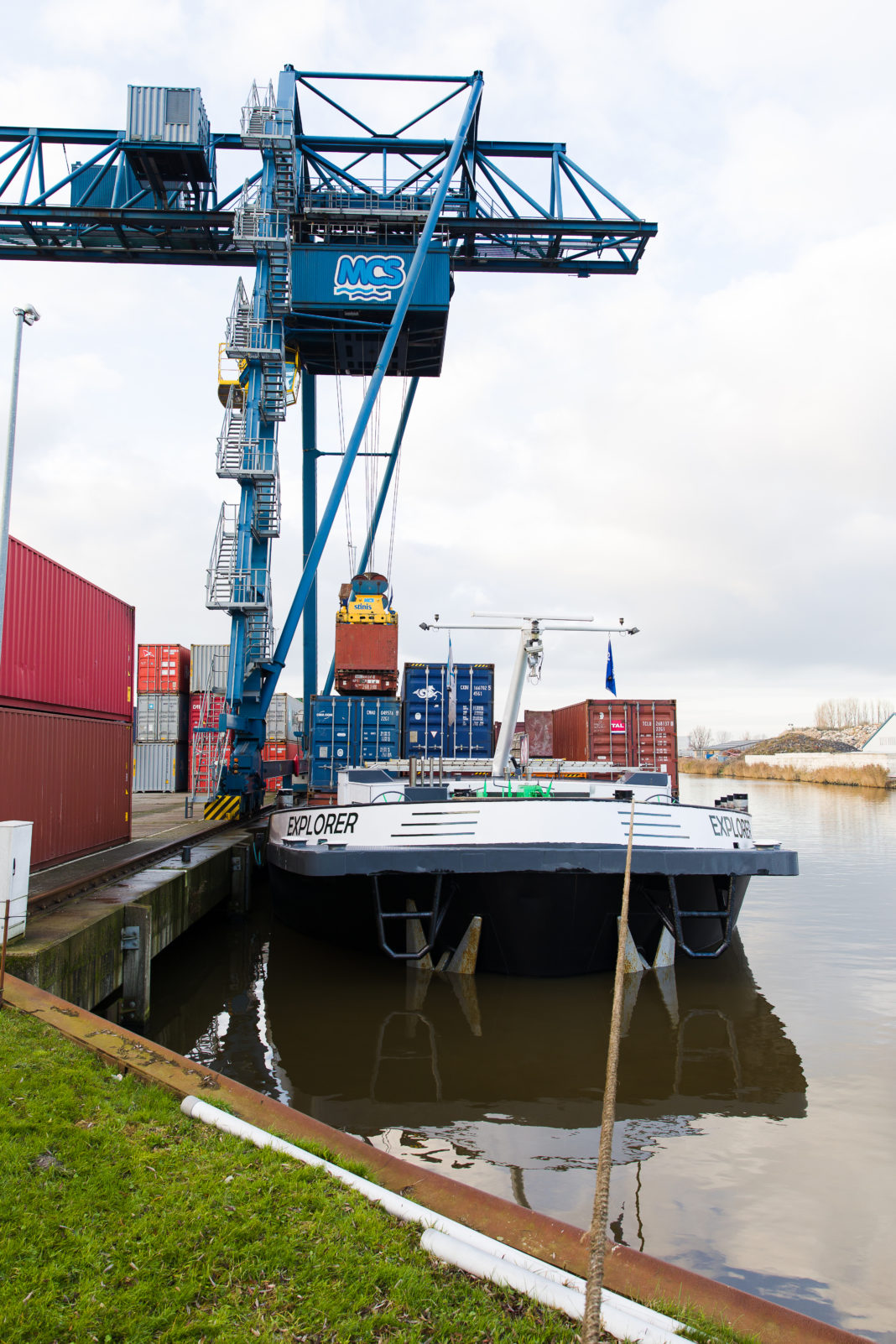 De Leeuwarder containerterminal van MCS doet daarom mee met de proef en zette de containers op een schip. Het is beter voor het milieu, het voorkomt files in de Randstad en de vloeren komen zeker op tijd aan, stellen de samenwerkende bedrijven.