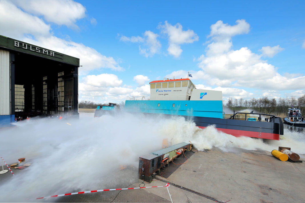 Vrijdag 23 april is bij Bijlsma Wartena de Coastal Crown te water gegaan. De Friese scheepswerf bouwt het 36 meter lange werkschip voor Acta Marine uit Den Helder.
