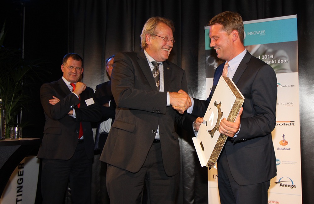 De nieuwgebouwde duwbak Don Quichot met aan boord tal van innovatieve methoden om de dampen uit de tanks direct te kunnen verwerken, zal op 17 juni starten met een proefperiode van 3 maanden in de Rotterdamse haven, waarbij de bak, geduwd door de boot Fraternité langszij schepen de tanks zal ontgassen. De bak wordt geëxploiteerd door Greenpoint Marine Services, een bedrijf dat is ontstaan in de schoot van het bevrachtingskantoor BFT Tanker Logistics. Michiel van Eijck van Greenpoint Marine Services nam de Innovatieprijs in ontvangst tijdens de galabijeenkomst in het Postiljon Hotel in Dordrecht op woensdag 1 juni uit handen van de Commissaris van de Koning voor Zuid-Holland, Jaap Smit. “Waarom de naam ‘Don Quichot’?”, vroeg de CdK aan Michiel van Eijck. Van Eijck had zijn antwoord klaar. “Don Quichot was iemand die vocht tegen iets dat anderen niet konden zien. Het is ongelooflijk maar tot drie jaar geleden was het toegestaan om een tanker die leeg was van benzeen in de open lucht te ontgassen, waarbij kankerverwekkende stoffen vrijkwamen.” Een groep ondernemers onder wie Marc Freriks besloot om niet langer te wachten op regelgeving maar iets te ontwikkelen waardoor schepen kunnen worden ontgast zonder schade voor het leefmilieu. Jaap Smit was onder de indruk: “Laten we hopen dat deze Don Quichot net zo lang bekend blijft als de man die vocht tegen windmolens.”