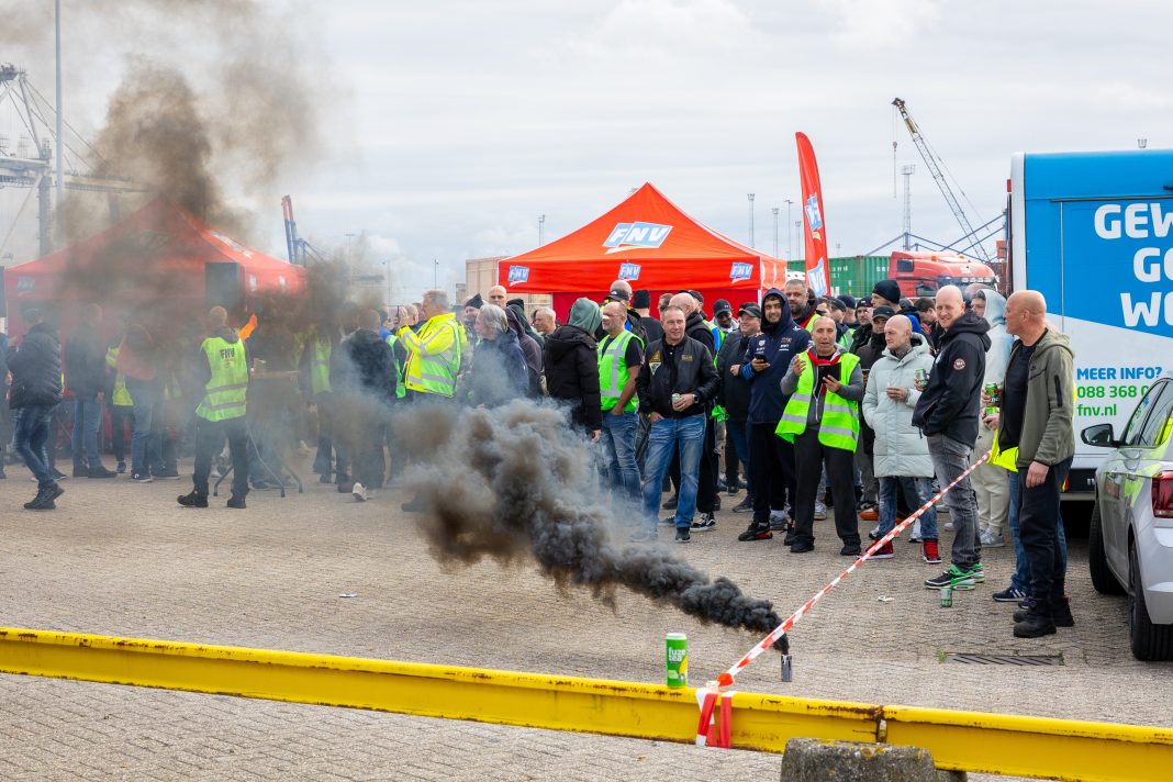 De staking van de sjorders in de Rotterdamse haven zorgt voor forse vertragingen aan de zeezijde. De actie, die woensdag begon, gaat voor onbepaalde tijd door.