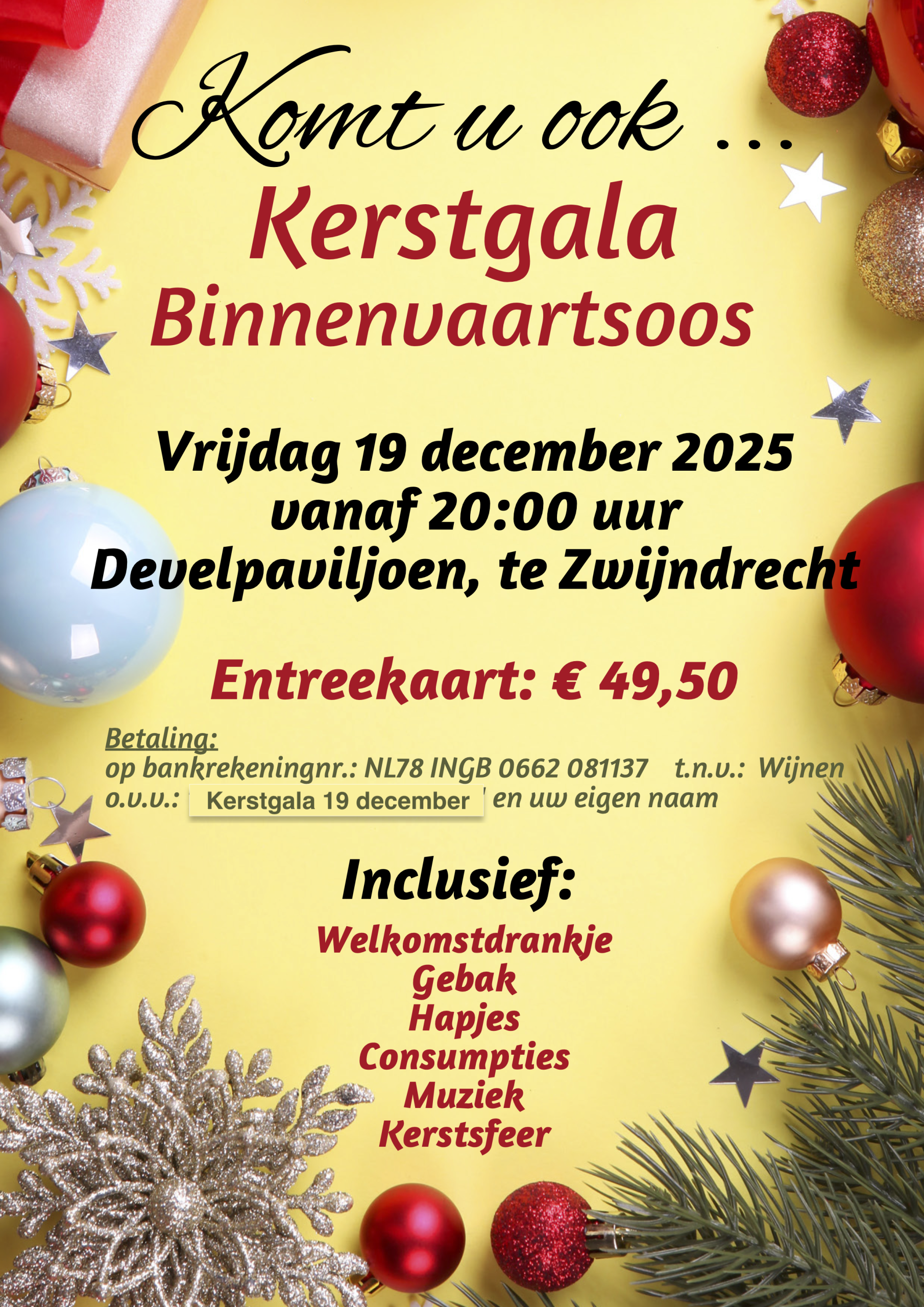 Na het grote succes van de afgelopen jaren van het Kerstgala van 2024, en op verzoek van velen, organiseert de Binnenvaartsoos dit jaar weer zo’n feestavond.