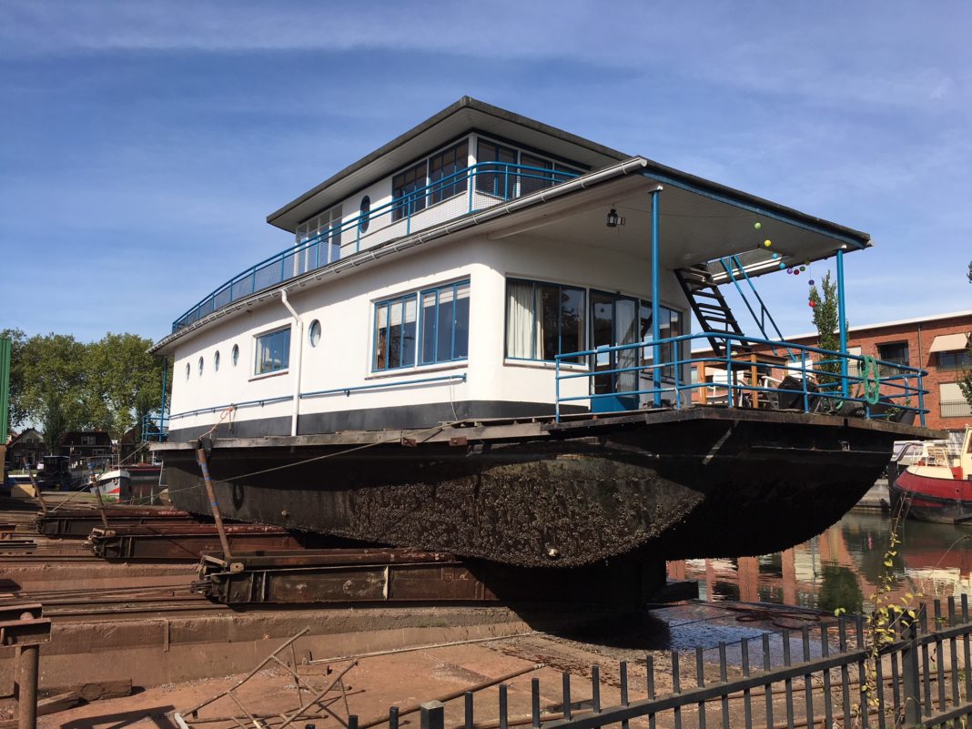 Op de helling van Museumwerf Vreeswijk valt sinds deze week een bijzonderheid te bewonderen. Het is de Mississippi, een monumentale woonboot die voor groot onderhoud naar de helling is gekomen.