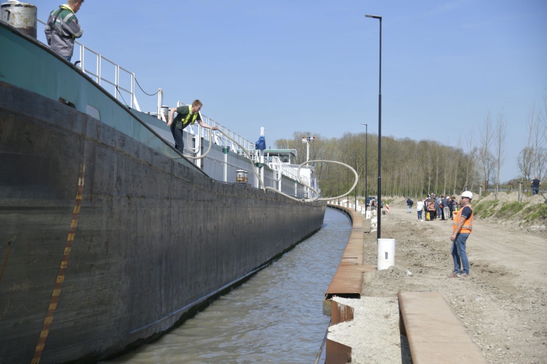 Op 18 april leverde Sas van Vreeswijk het eerste deel van het verbrede Lekkanaal op. Motorkraanschip Progress verwijderde de laatste boeien met zijn kraan, waarna het mts Zennestroom als eerste kon afmeren (foto boven). Mts Commander volgde dat voorbeeld.