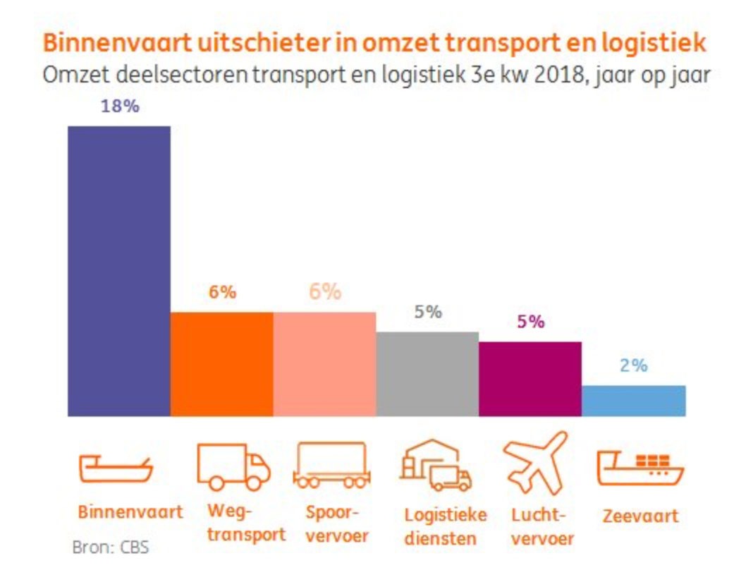 Door de langdurige lage waterstanden is de omzet van binnenvaartbedrijven in het derde kwartaal met 18 procent gestegen. ING Economisch Bureau plaatste daarover maandag 3 december een bericht op Twitter.