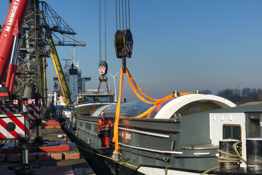 Bij bio-raffinaderij Alco Bio Fuel in Gent zijn vier binnenschepen opslagtanks komen lossen. Alco Bio Fuel gaat ze inzetten in het productieproces om CO2 vloeibaar te maken.
