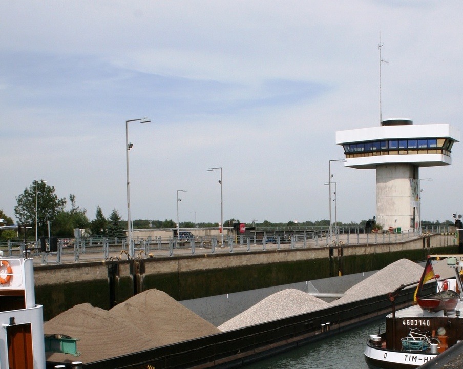 De veertig jaar oude sluis van Iffezheim is een van de grootste in haar soort in Europa. Ieder jaar passeren er zo’n 30.000 vrachtschepen met ongeveer 25 miljoen ton lading.