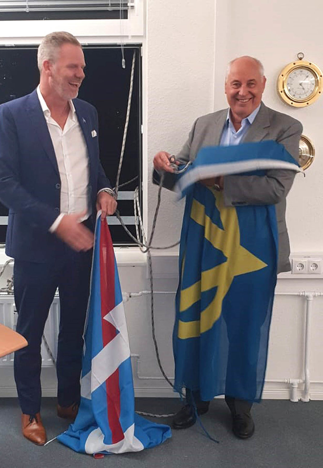 Het officiële moment vond plaats in het kantoor van Deymann Tankrode Logistics in Hamburg, in aanwezigheid van alle medewerkers. Conform de traditie in de scheepvaart was er een vlagwisseling: Rick van Westenbrugge streek de bedrijfsvlag van Fluvia en Martin Deymann hees de nieuwe vlag van Reederei Deymann.