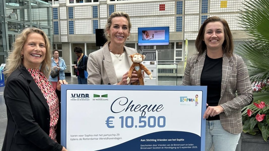De feestelijke vaartocht van de Vrienden van de Binnenvaart en ondernemersvereniging De Wandelgang op 6 september heeft 10.500 euro opgeleverd voor het Sophia Kinderziekenhuis.